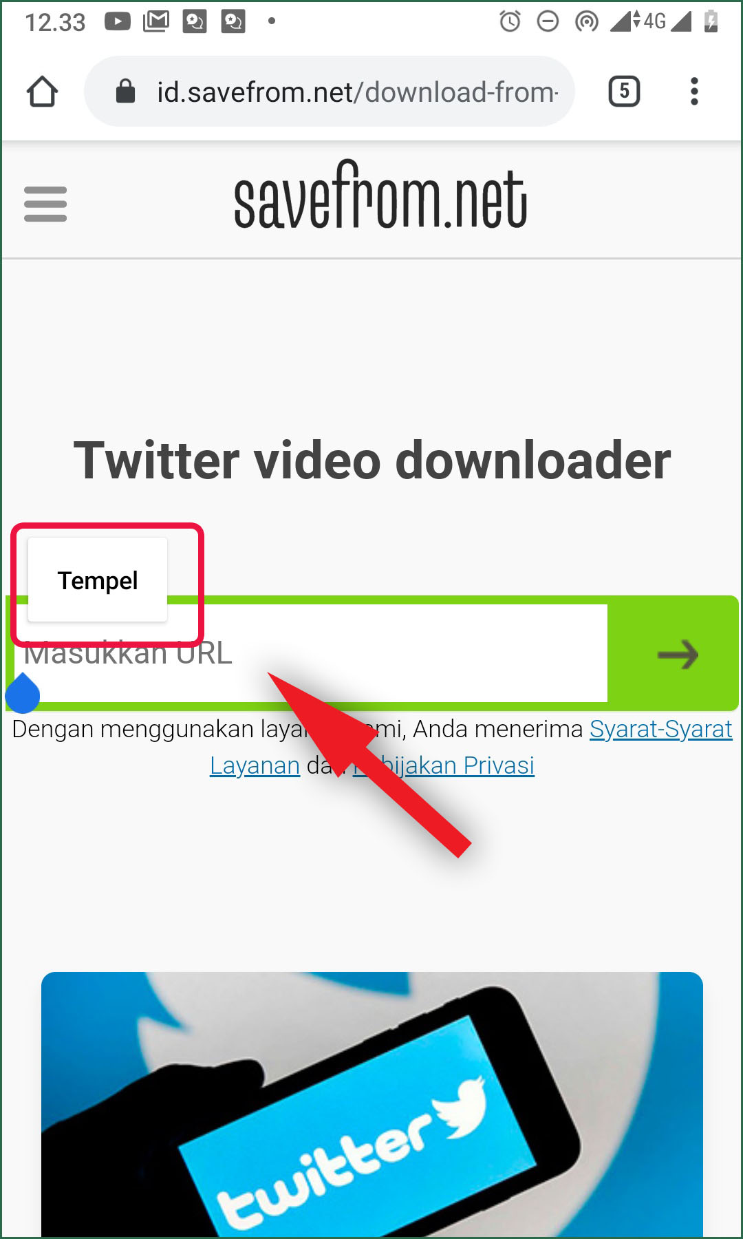 - Sekarang buka browser hape kamu dan buka https://id.savefrom.net/download-from-twitter